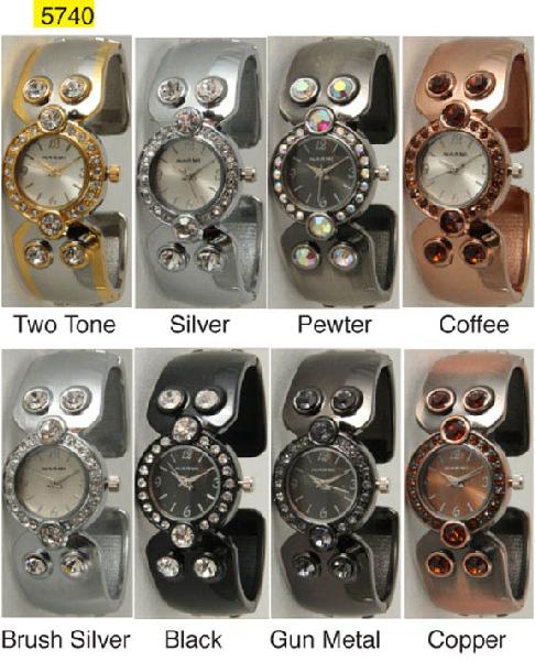 6 Geneva Metal Cuff Bangles/W Rhinestones