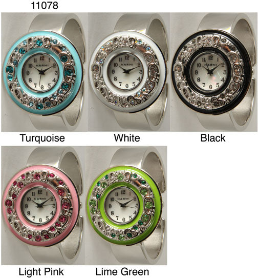 6 Narmi Womens Metal Bangles w/Rhinestones